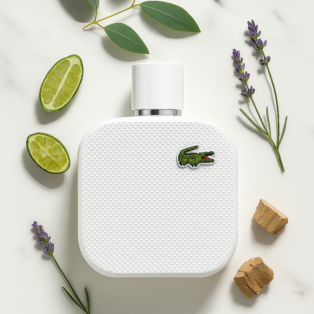Lacoste L.12.12 Blanc Eau de Parfum is a modern ode to crisp elegance and masculine freshness, inspired by the iconic Lacoste polo shirt. Launched as a deeper reinterpretation of the original Blanc EDT, this EDP captures the confidence of sporty refinement with a more intense, long-lasting character. The scent opens with an uplifting blend of spicy cardamom and zesty finger lime, immediately energizing the senses. At its heart, a clean and comforting duo of eucalyptus and lavandin create a smooth, aromatic freshness. The base is warm and grounding — composed of cedarwood and pine essence layered with vetiver and suede — providing a subtle earthy depth and elegant signature.