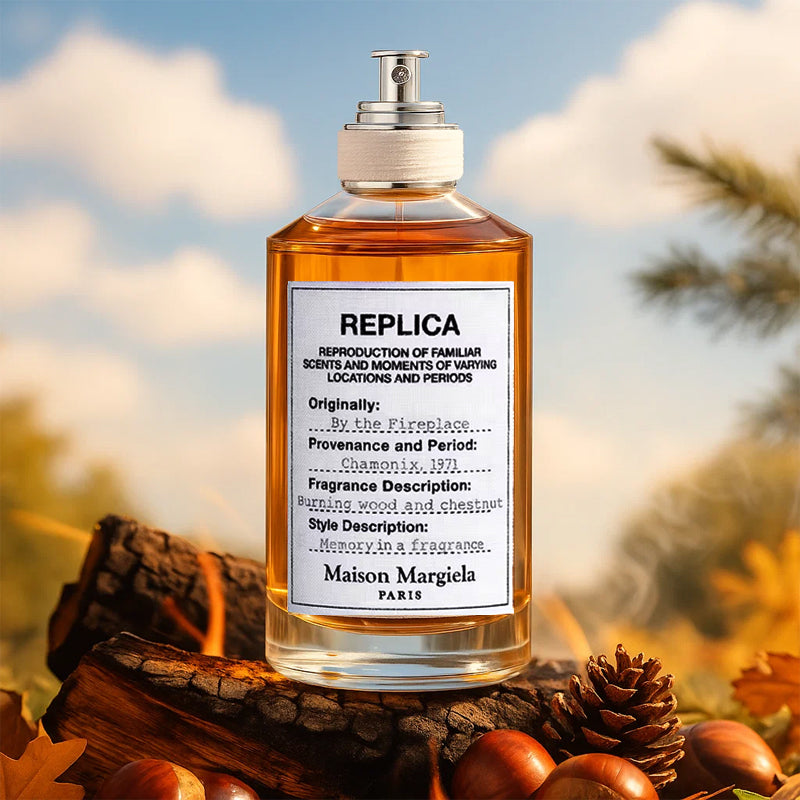 Experience the comforting embrace of Maison Margiela Replica By The Fireplace Unisex Eau de Toilette — a warm, smoky, and sweet scent that evokes memories of crackling fires and cozy moments.