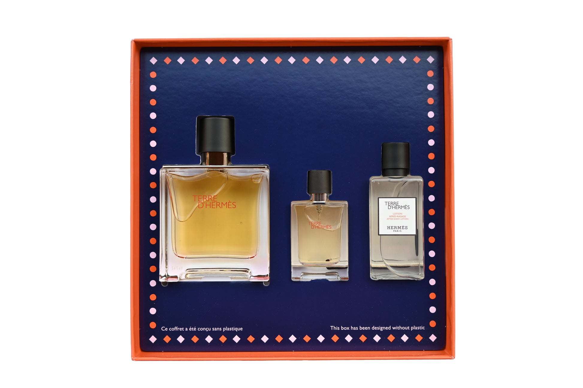 Elevate your fragrance ritual with the Terre d’Hermès Gift Set – a sophisticated trio crafted for the modern man who walks in harmony with earth and sky. Rooted in nature and refined by craftsmanship, this set is a tribute to strength, elegance, and grounded masculinity.